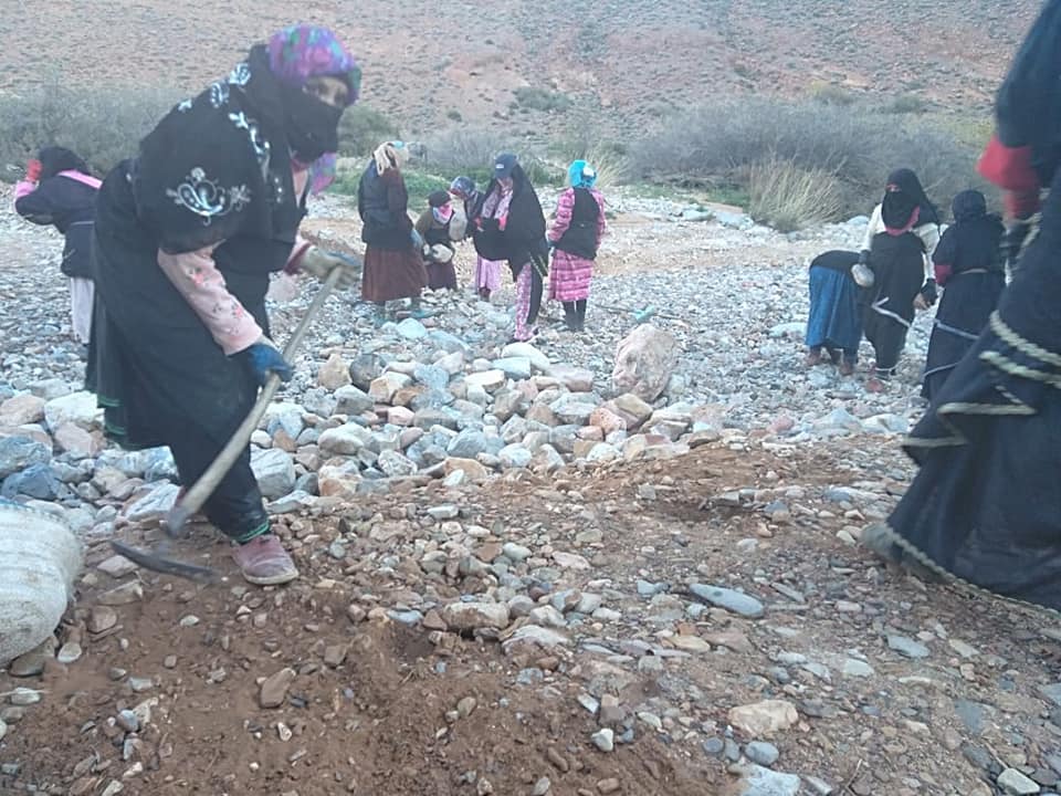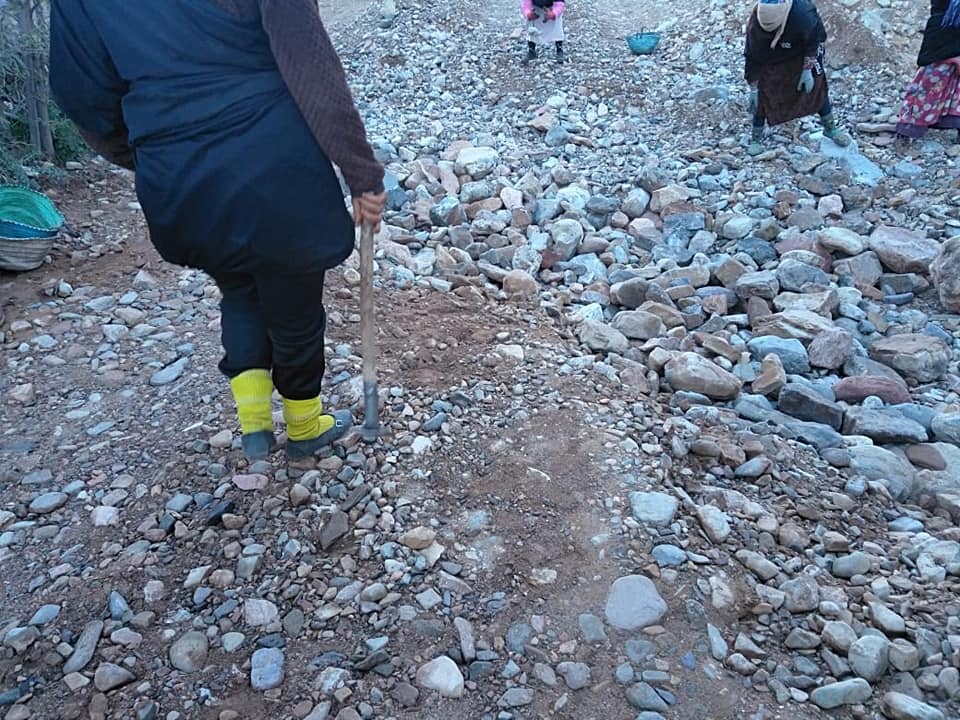 في منظر غير مألوف، خرجت نسوة بدوار “تزركين” التابع للنفوذ الترابي لجماعة تاسريرت دائرة تافراوت إقليم تيزنيت، وشمرن عن سواعدهن من أجل ترقيع مقطع طرقي يربط مدشرهن عن العالم الخارجي، بعدما استنفدت جمعية الدوار كل الوسائل المتاحة لمناشدة المسؤولين محليا وإقليما وجهويا من أجل التدخل لفك العزلة عن هذا الدوار.