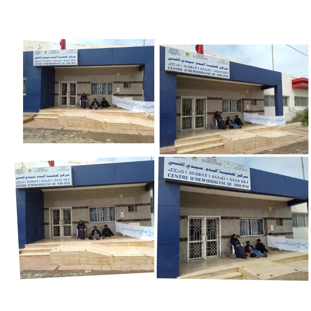 ولهذا قرر ثلاثة مرضى خوض اعتصام مفتوح ضدا على ما يتعرضون له من هذا الاقصاء من حقهم الدستوري في التطبيب؛ والاعتصام فتحه المرضى أمام مركز تصفية الدم بسيدي إفني، ويتعلق الأمر بكل من رشيد بوحفرة وأسماء الغزيوي وعبد العالي المتورسي .