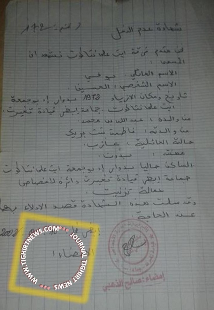 هذا وتوصلت الجريدة بمجموعة من الوثائق تثبت ما مدى تجاهل الدولة المغربية ومؤسساتها لملف هذا الأخير، المزداد سنة 1972 بدوار “إدبوجمعة” بجماعة “إبضر” بـ”سيدي إفني” والحامل لبطاقة التعريف الوطنية رقم JE193225. من بينها “مديرية الوقاية والإدماج الاجتماعي” بوزارة “التنمية الاجتماعية والأسرة والتضامن” التي يراسلها منذ 2008 دون جدوى.